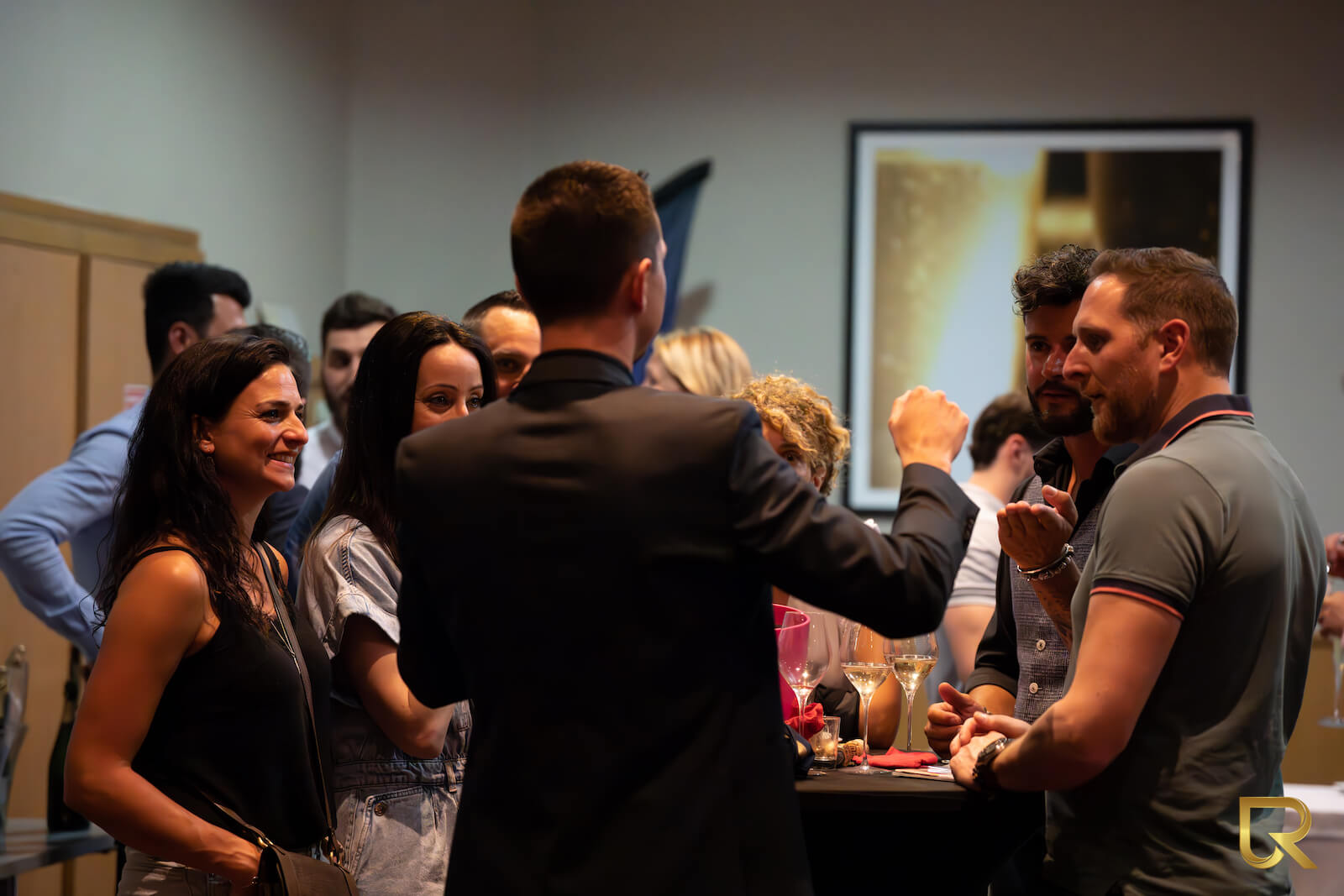 Cyril, magicien réalise des expériences de lecture de pensée, prédictions et coïncidences impossibles à quelques centimètres des invités. En soirée privée, en close‑up, il circule de groupe en groupe pendant un cocktail ou de table en table lors d’un dîner, sans interrompre le déroulé. - Pourquoi choisir un magicien pour votre soirée d’entreprise ?